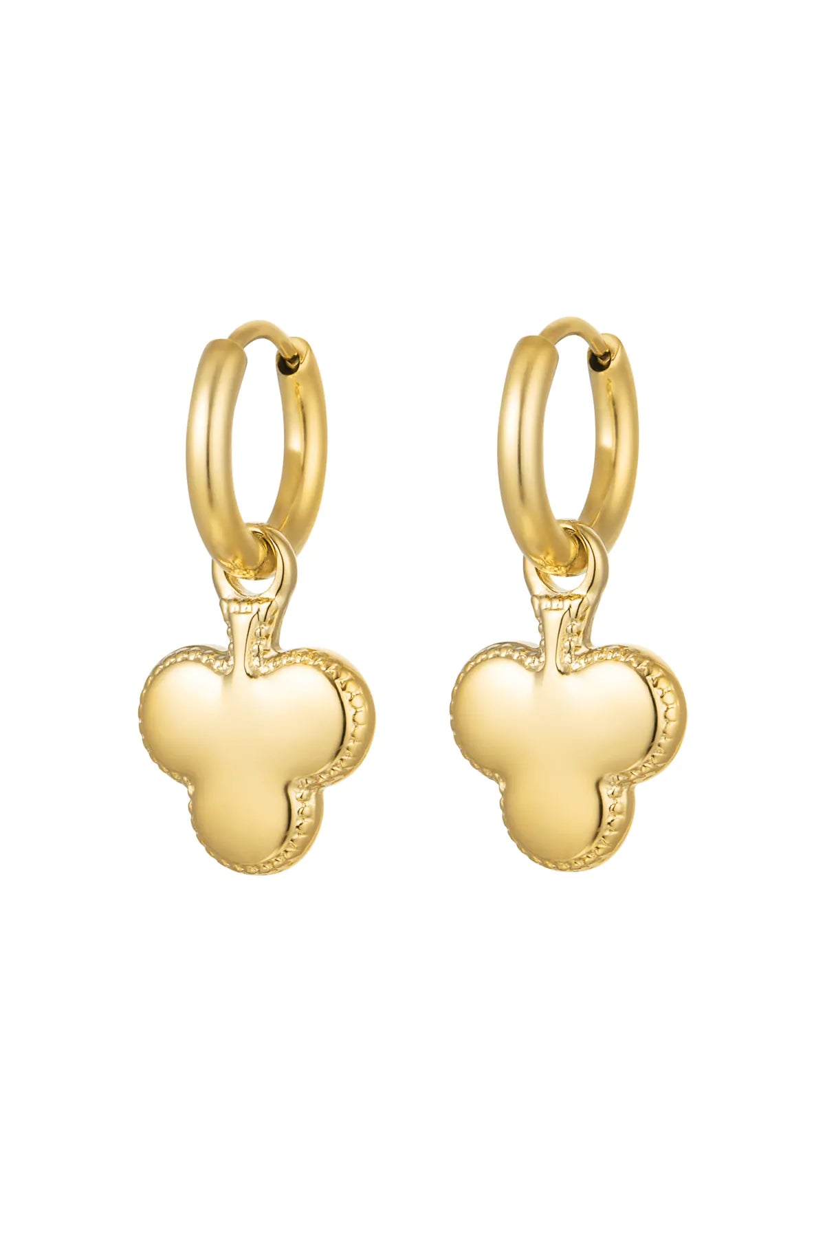 Trend alert!! Hoe leuk zijn deze gouden oorbellen, voorzien van een leuke bedel in de vorm van een klavertje. Superleuk en mega trendy! Erg leuk om deze oorbellen te combineren met meerdere bijpassende sieraden.