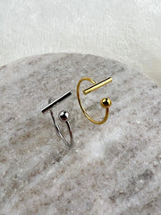 Ervaar de subtiele harmonie van ‘Balanced Adorn’, een betoverende ring met een open design, aan elke zijde versierd met een elegant balletje en een verfijnd staafje. Deze unieke ring belichaamt perfecte balans en geeft je een gevoel van evenwicht en sereniteit bij elke beweging. Of je nu kiest voor de gouden of zilveren uitvoering, ‘Balanced Adorn’ straalt tijdloze elegantie uit en voegt een vleugje verfijning toe aan je dagelijkse look. Draag deze prachtige ring als een symbool van harmonie en stijl, en geniet van de subtiele schittering van de materialen die met elkaar versmelten om een betekenisvol sieraad te creëren
