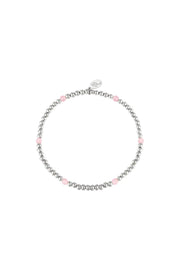 Schattig armbandje met zilveren en enkele roze kraaltjes. Dit armbandje is de perfecte musthave en past bij elke look! Het armbandje is gemaakt van Stainless Steel en steentjes. Het armbandje heeft een afmeting van 17 cm en is dankzij het elastiek perfect te dragen.